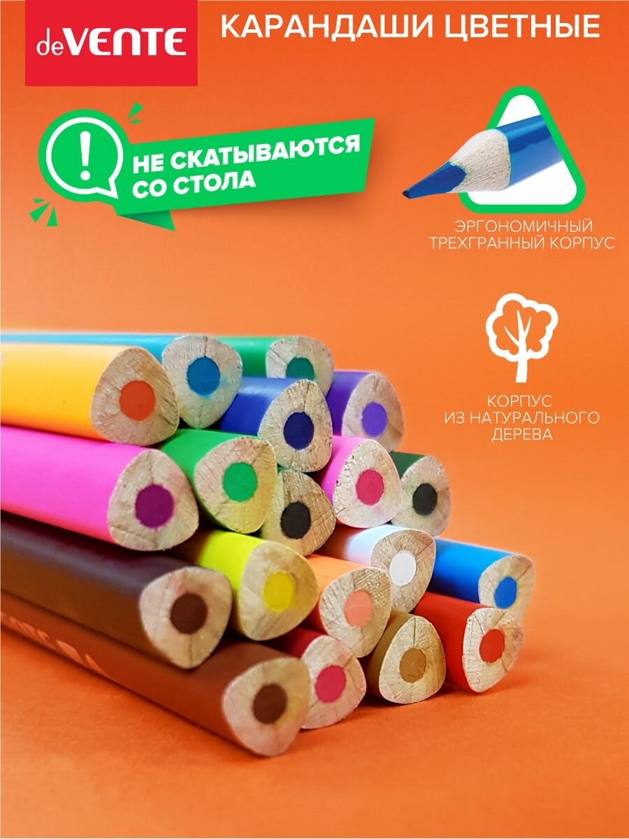 Цветные карандаши deVENTE "Trio Mega Soft", 24 цвета, 4М, диаметр грифеля 3 мм, трехгранные (5024915)
