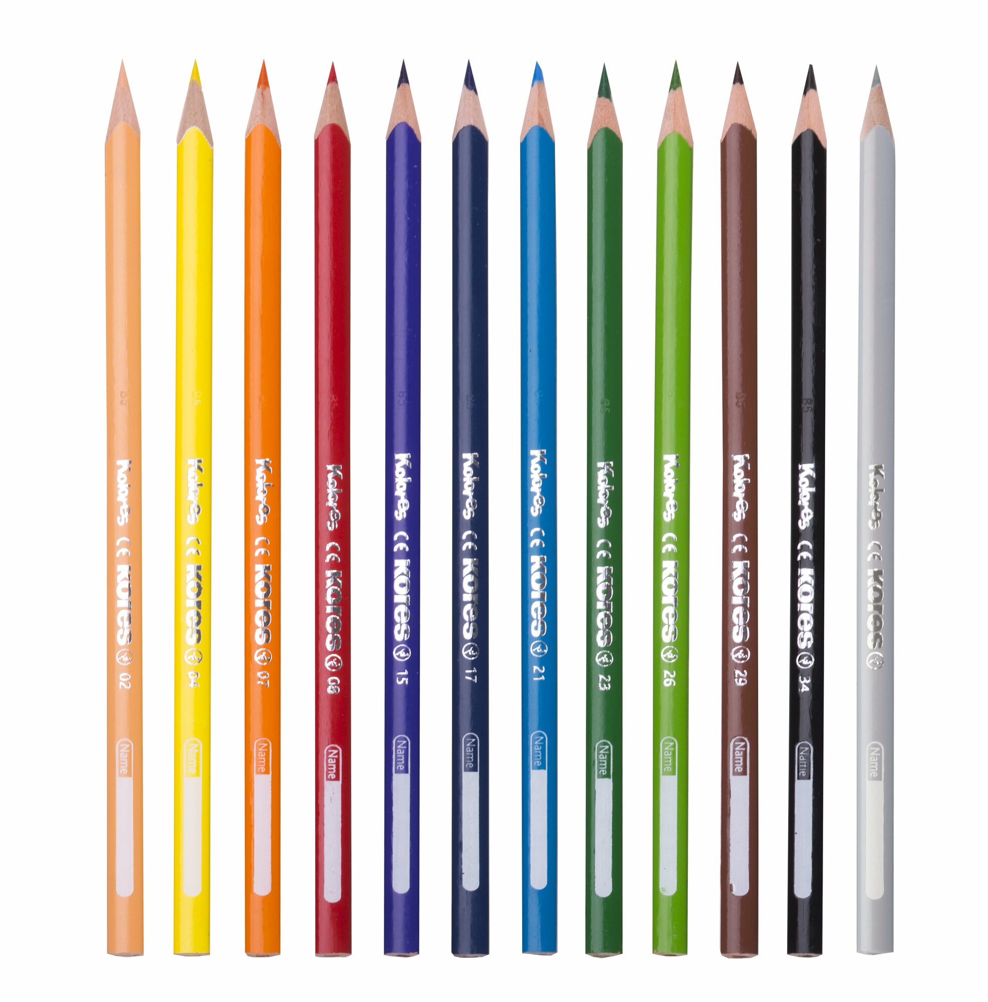 Отзывы на Карандаши цветные Kores, трехгранные, толщина грифеля 3 мм, набор 12 цветов+точилка