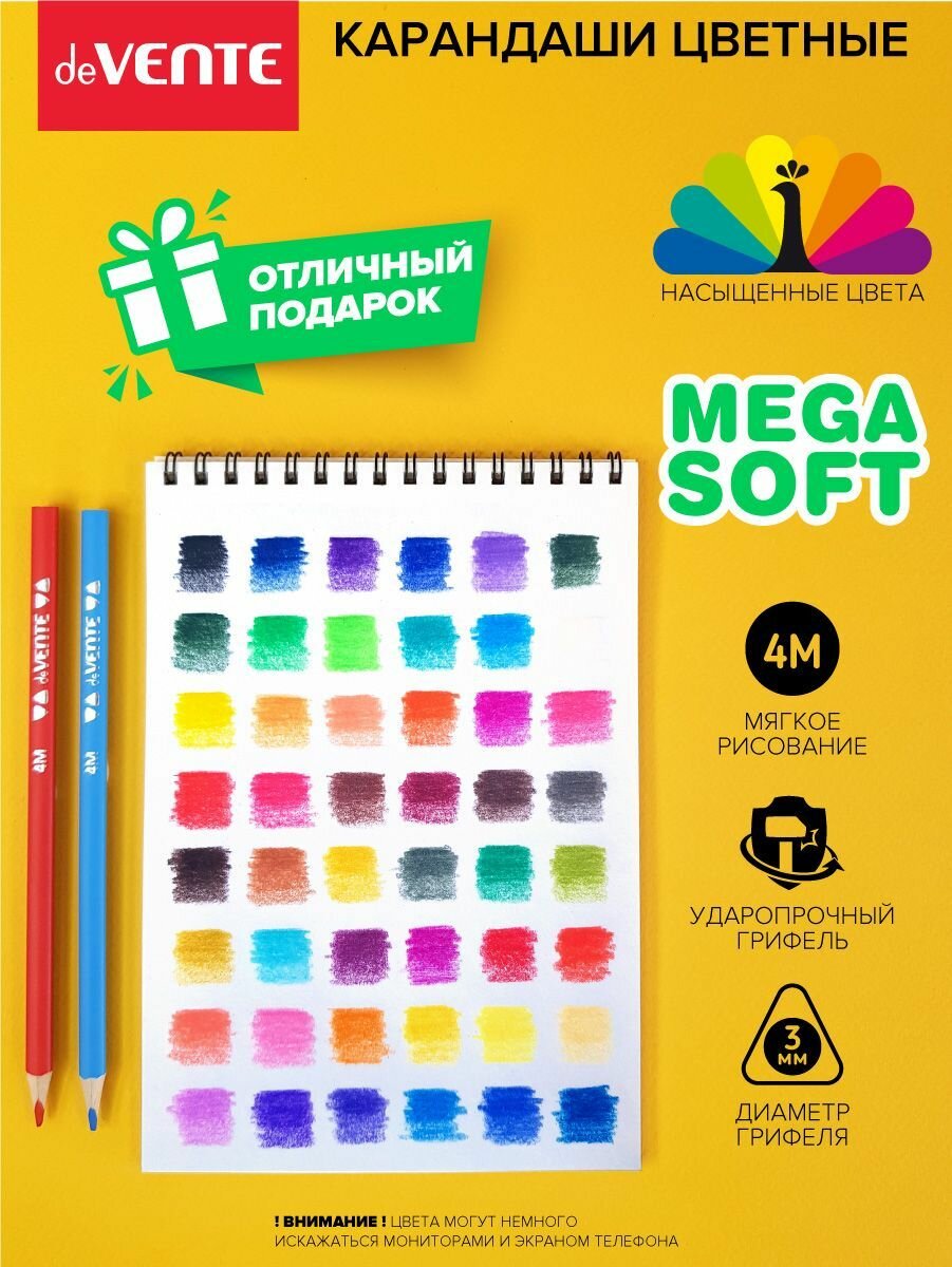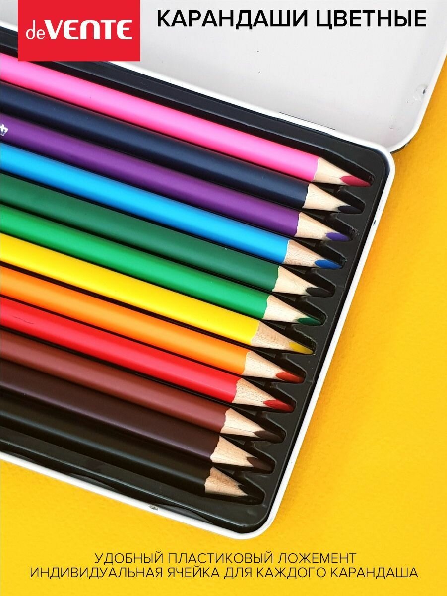 DeVENTE Карандаши 12 цветов, deVENTE Trio Mega Soft, трёхграннный корпус, 4M, 3 мм, металлическая подарочная коробка