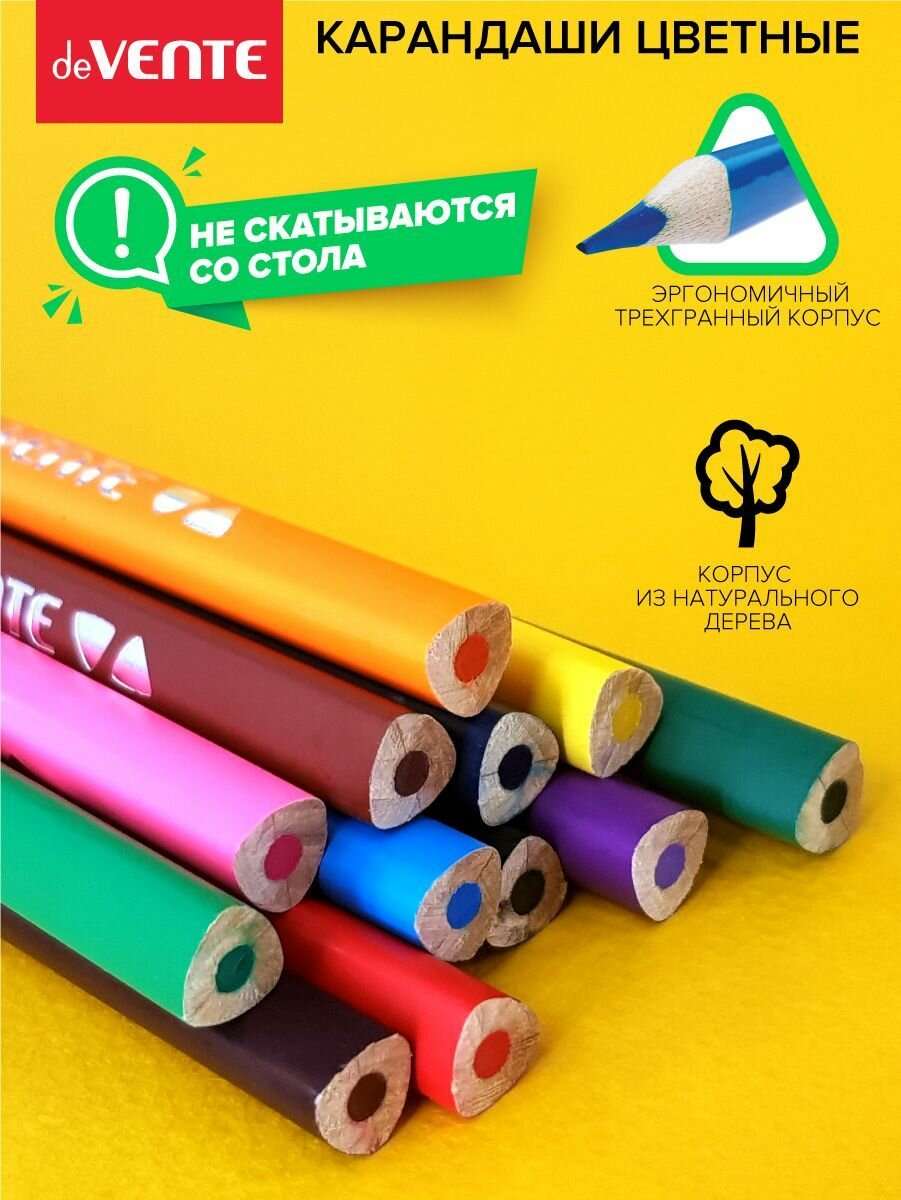 Карандаши акварельные 12 цветов deVENTE Trio Mega Soft, 3 мм, шестигранные, в картонной коробке