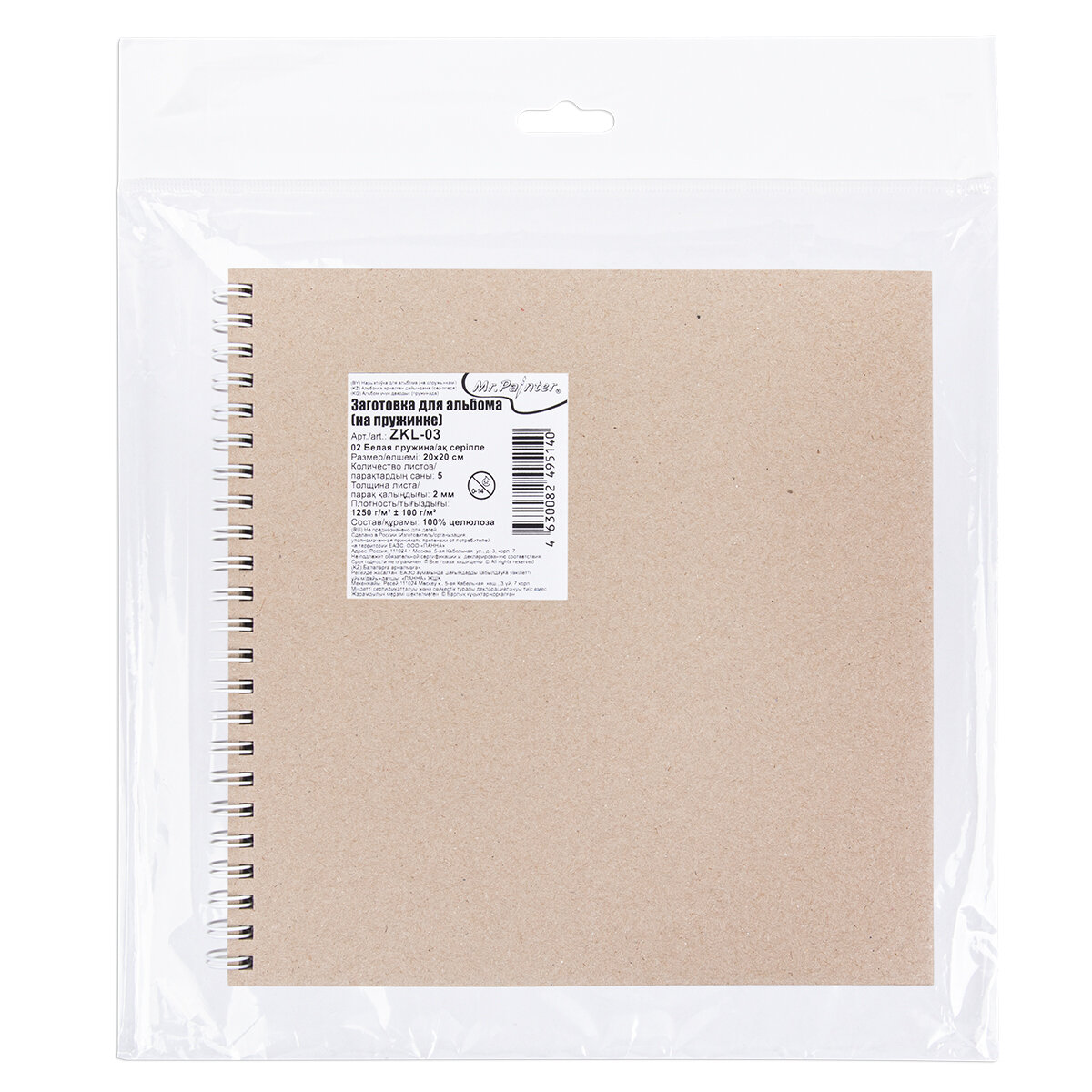 Заготовка для альбома (на пружинке) "Mr.Painter" ZKL-03 1250 г/кв.м 20 x 20 см 5 л. 02 Белая пружина информация: