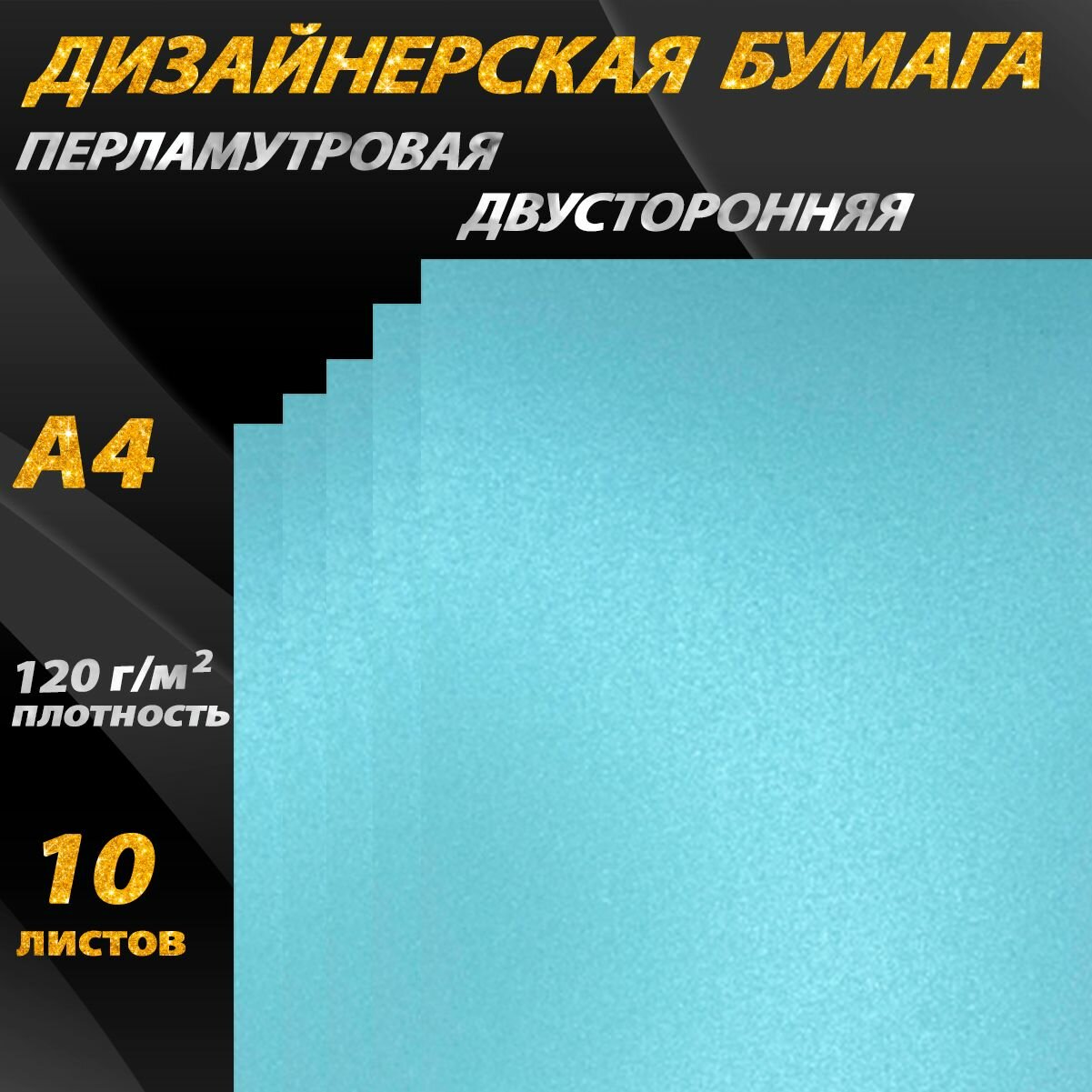 Бумага перламутровая 120 г/м2 A4, 10 листов для скрапбукинга дизайнерская нежно-голубая информация: