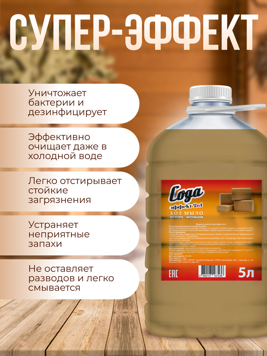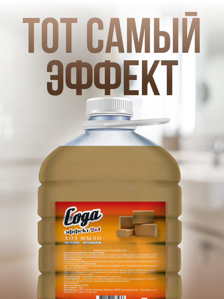 10 цен на Жидкое хозяйственное мыло Сода эффект 2в1, канистра 5л