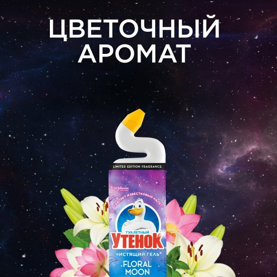 | Подробная комплектация | Чистящее средство для унитаза Туалетный Утенок Floral Moon, 1 флакон 800 мл |