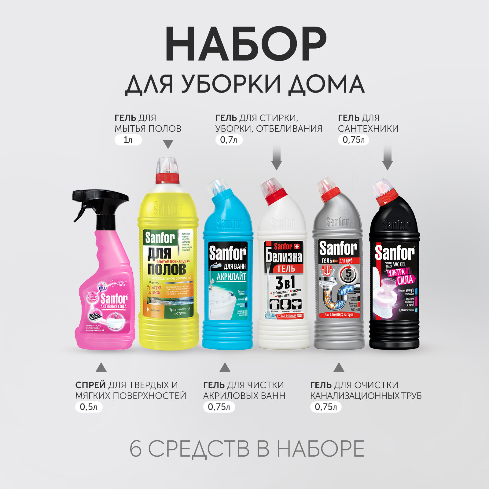 Sanfor Набор бытовой химии для уборки вашего дома, 6 штук информация:
