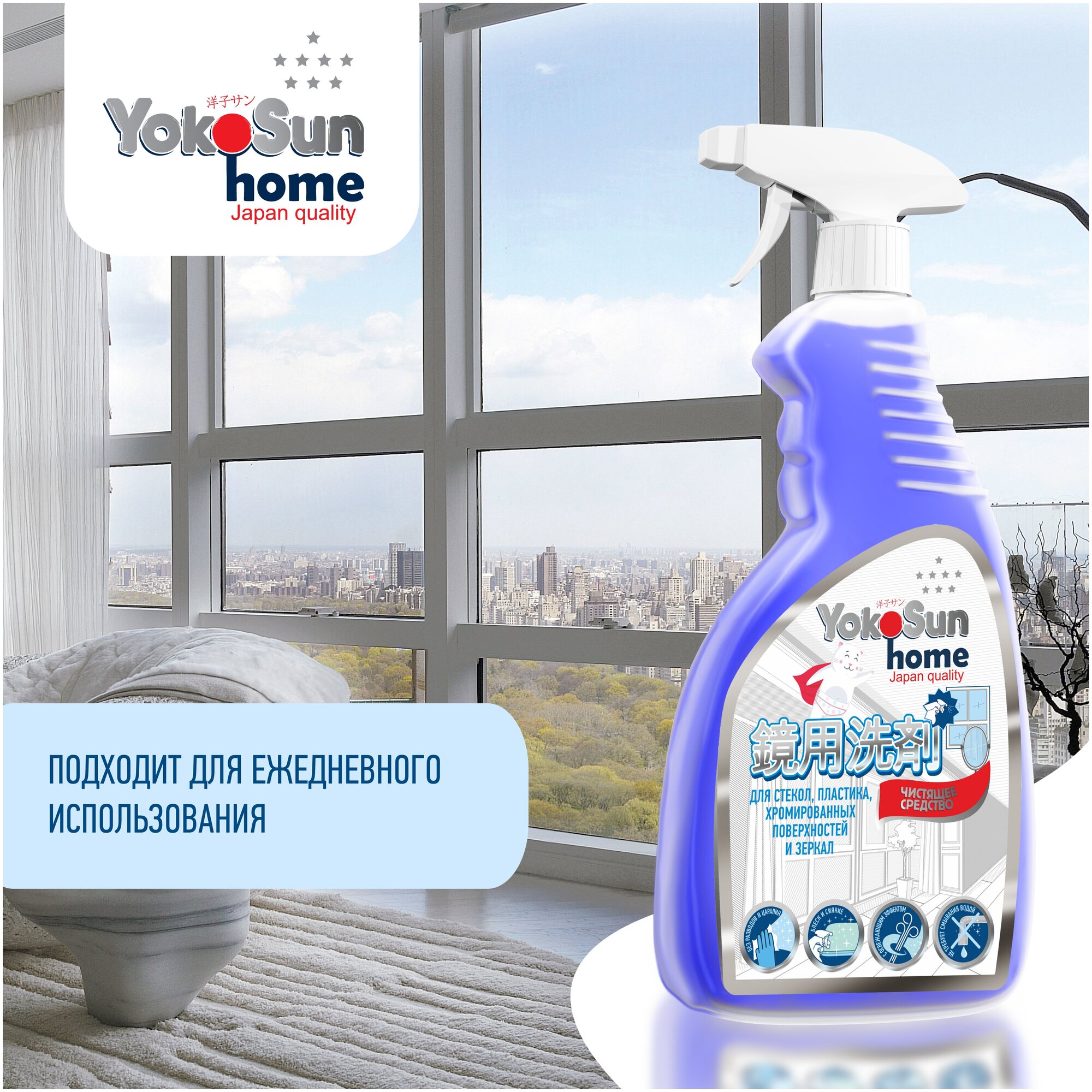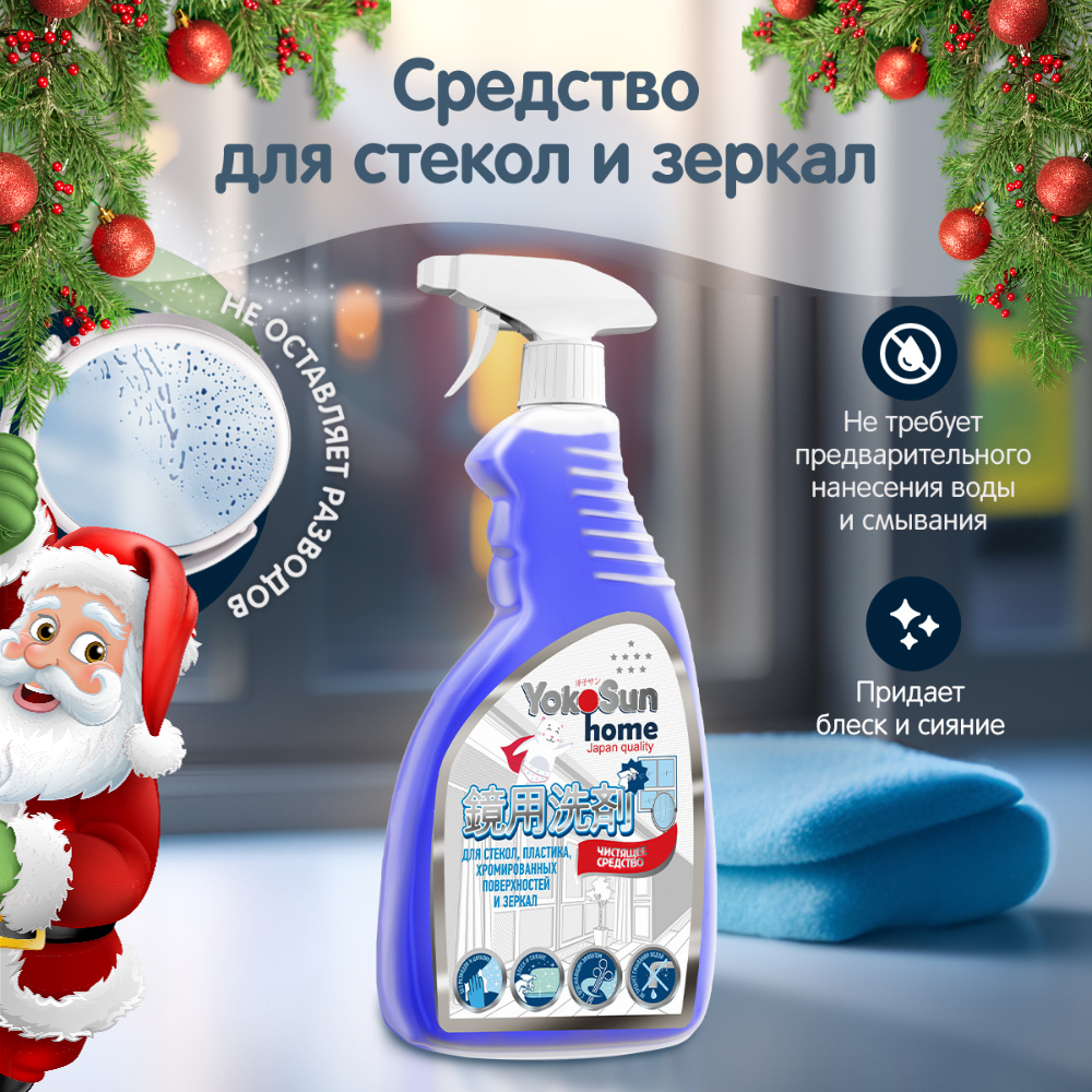 Чистящее средство для стекол, пластика, хромированных поверхностей и зеркал YokoSun, 500 мл информация: