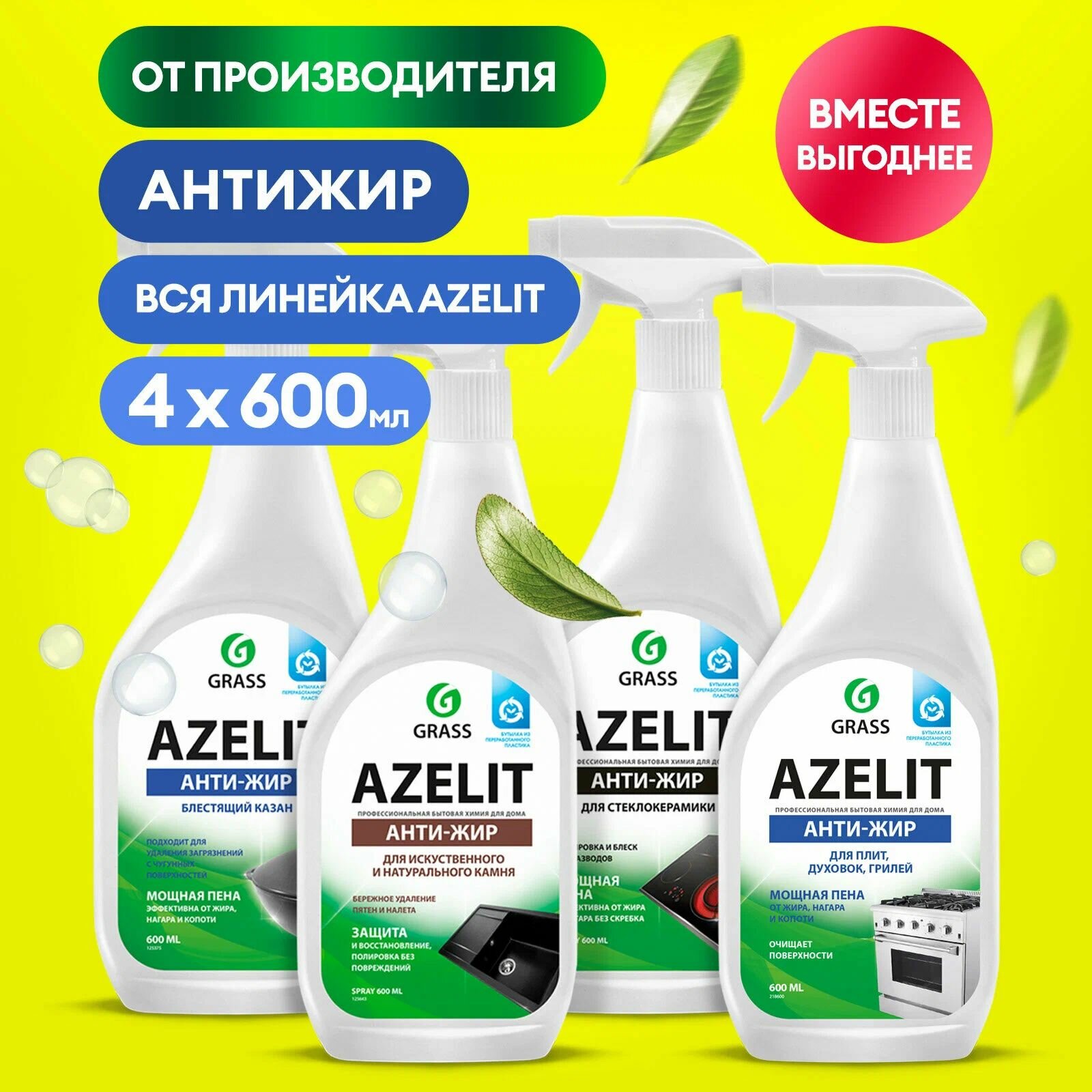 Набор Grass для уборки кухни Azelit анти жир 4 средства, 600 мл.