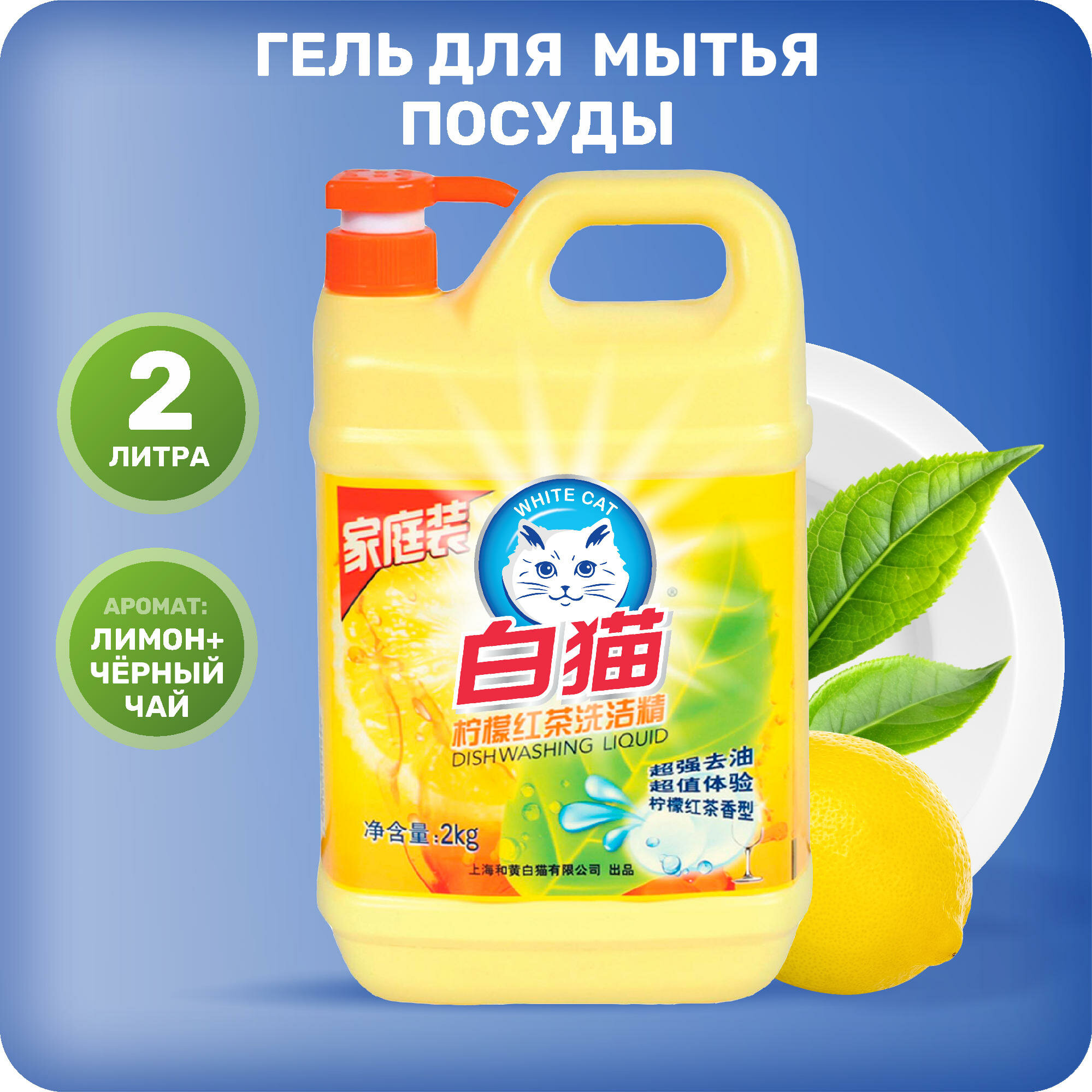 Средство для мытья посуды универсальное BAIMAO Whitecat Classic Dish Washing Detergent 2000 мл 1 510 ₽
