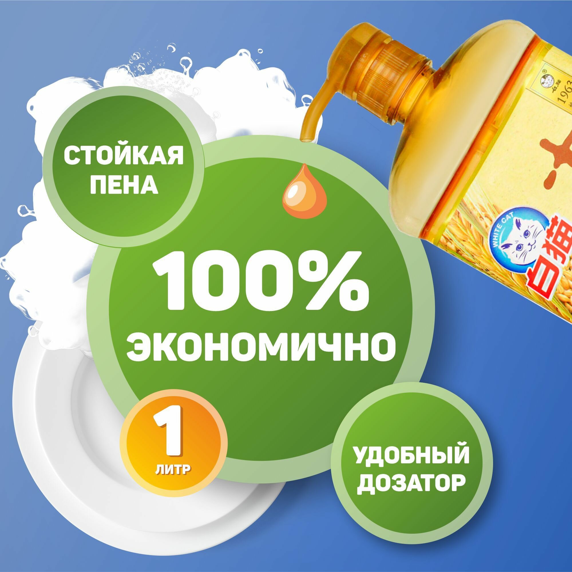 Средство для мытья посуды BAIMAO Whitecat Natural Soda Dishwashing Liquid 1100 мл 1 578 ₽