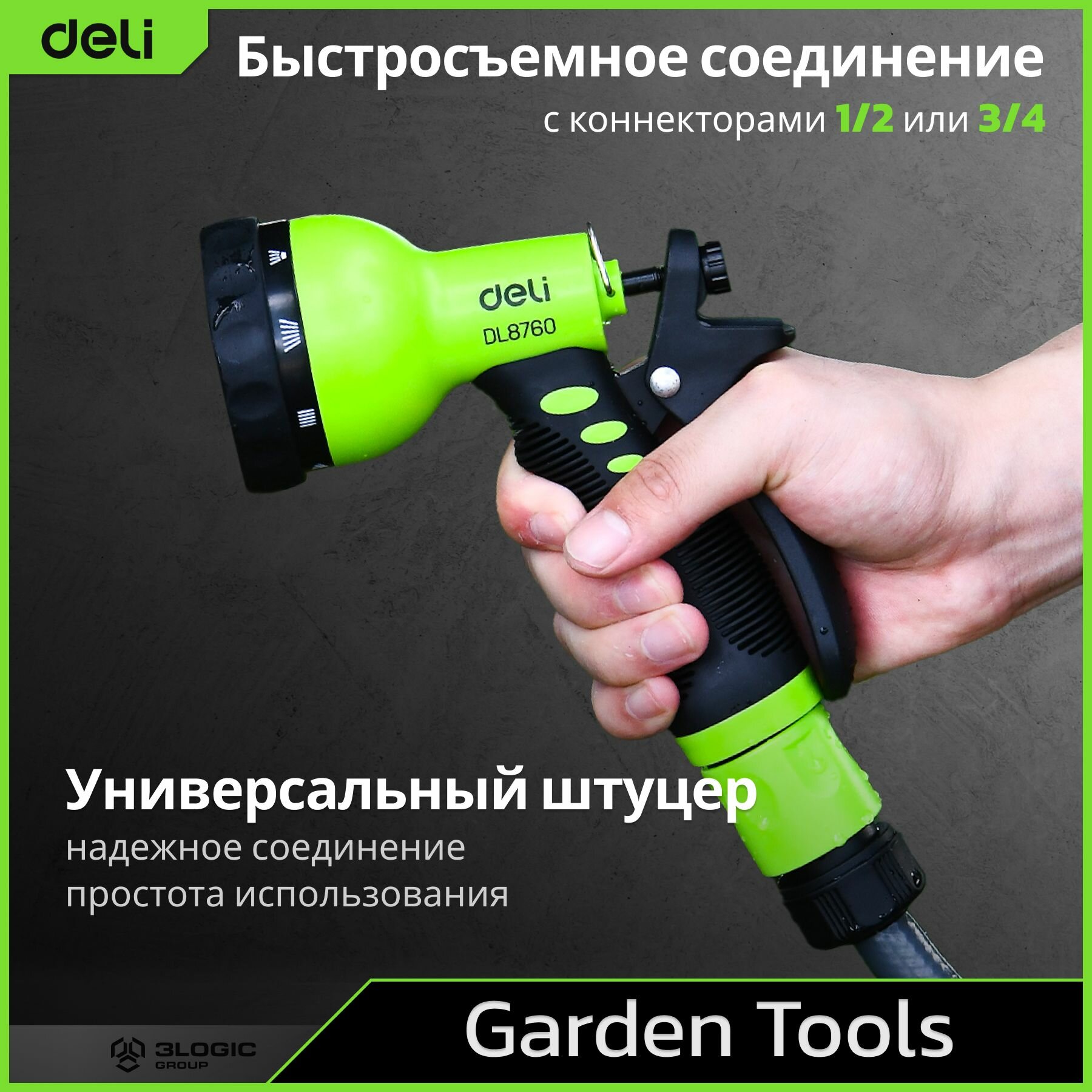 Пистолет-распылитель поливочный Deli DL8760 (9 режимов распыления, пластиковый корпус, фиксатор курка, прорезиненная рукоять) информация: