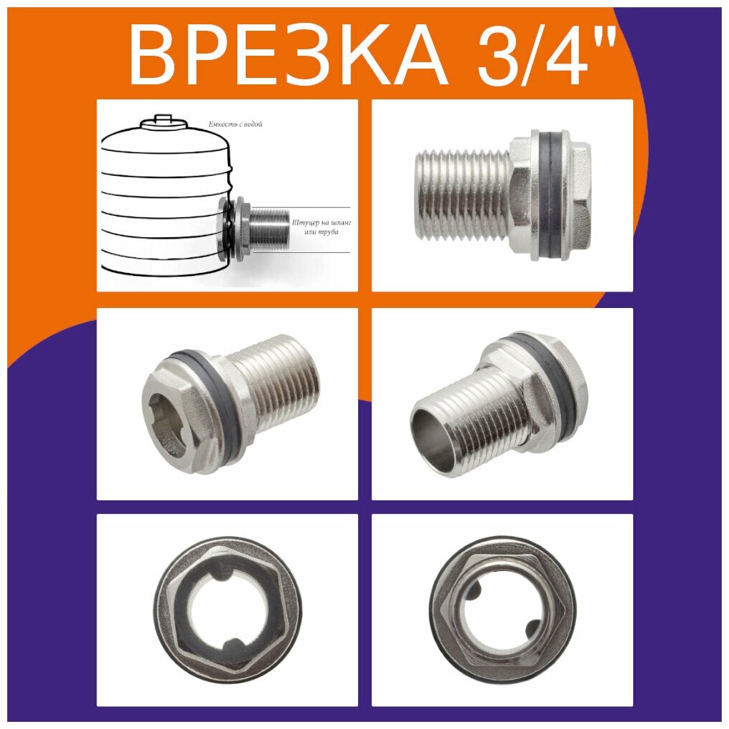 10 цен на Штуцер (врезка) в бак (емкость) с прокладкой 3/4", латунь