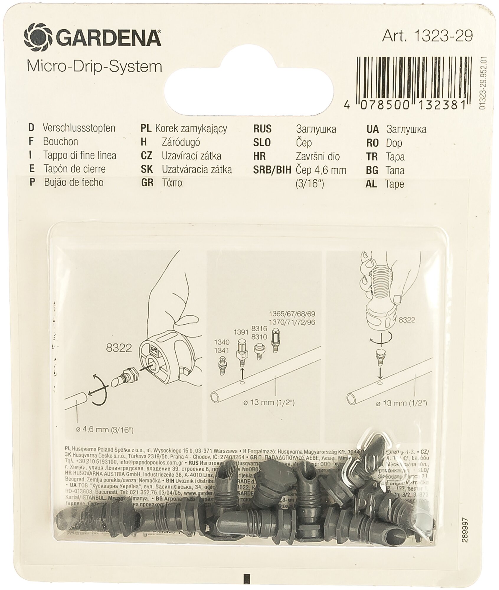 | Комплектация | Заглушка GARDENA 01323-29.000.00 (10 штук) |