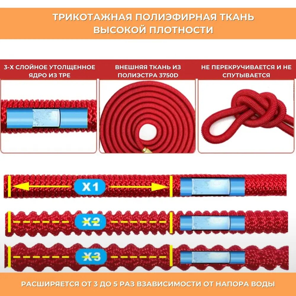 Шланг растягивающийся для полива Magic Garden Hose с 5 до 25метров, с фитингами и распылителем информация: