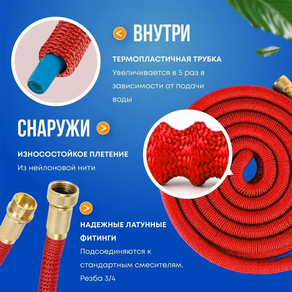 Шланг садовый растягивающийся для полива и мойки автомобиля