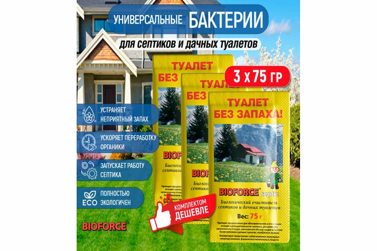 10 цен на Бактерии для септиков и дачных туалетов BIOFORCE Septic 75г. комплект
