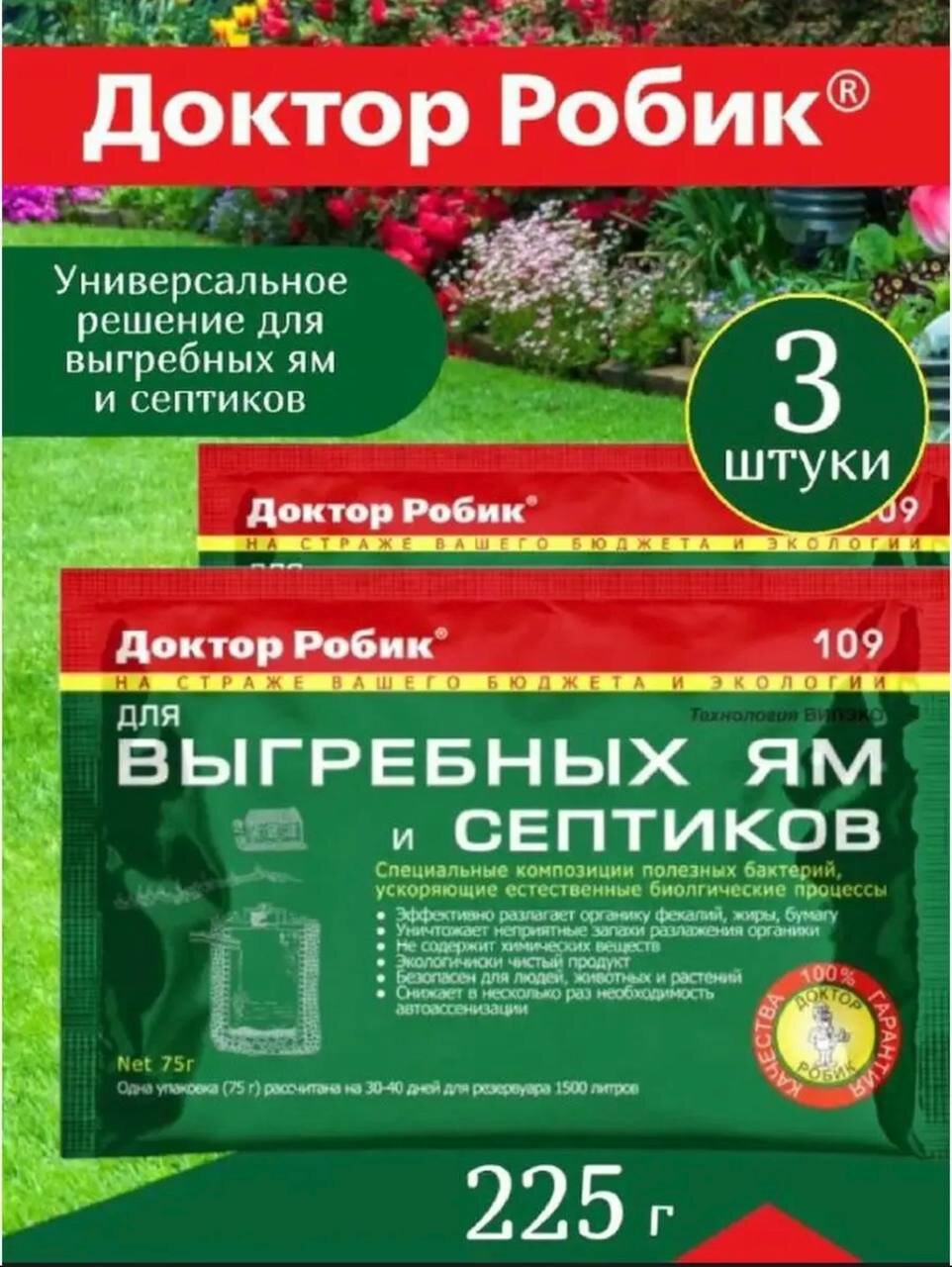Биоактиватор для выгребных ям и септиков, Доктор Робик 3 штуки информация: