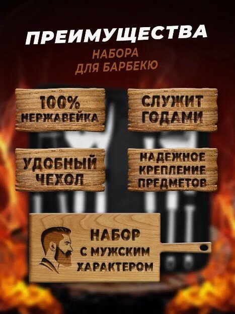Отзывы на Набор для барбекю 6 предметов с чехлом BBQ / Инструменты для гриля, мангала 6 шт. из нержавеющей стали/ Подарочный набор для шашлыка в тканевом чехле.