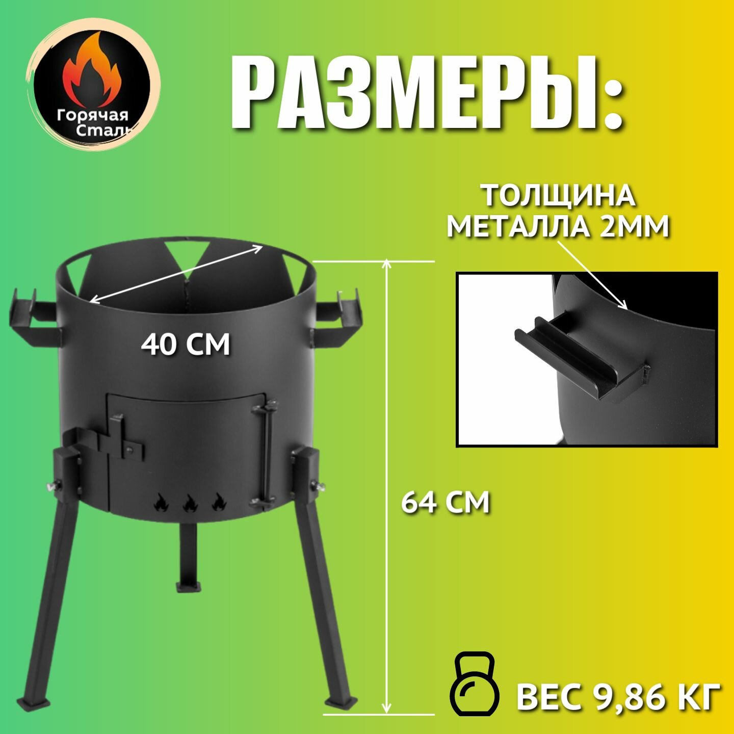 Печь для казана 12 - 16 литров из металла 2мм, диаметром 40см для дома и дачи. Горячая Сталь информация: