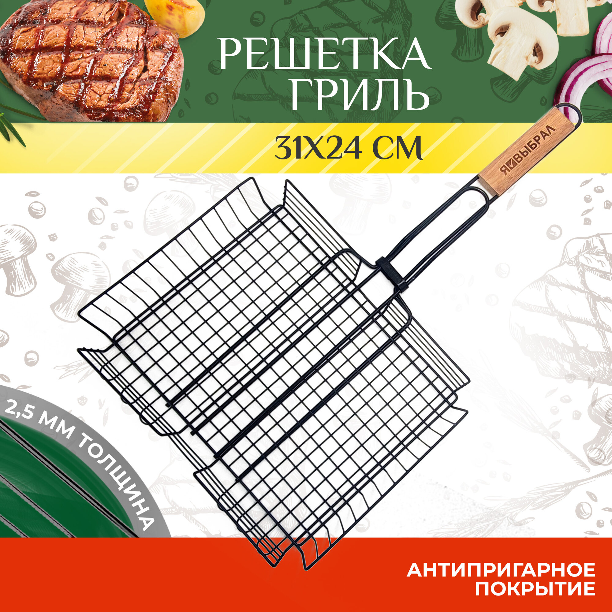 10 цен на Решетка для гриля, барбекю и шашлыка, сетка на мангал большая 31х 24