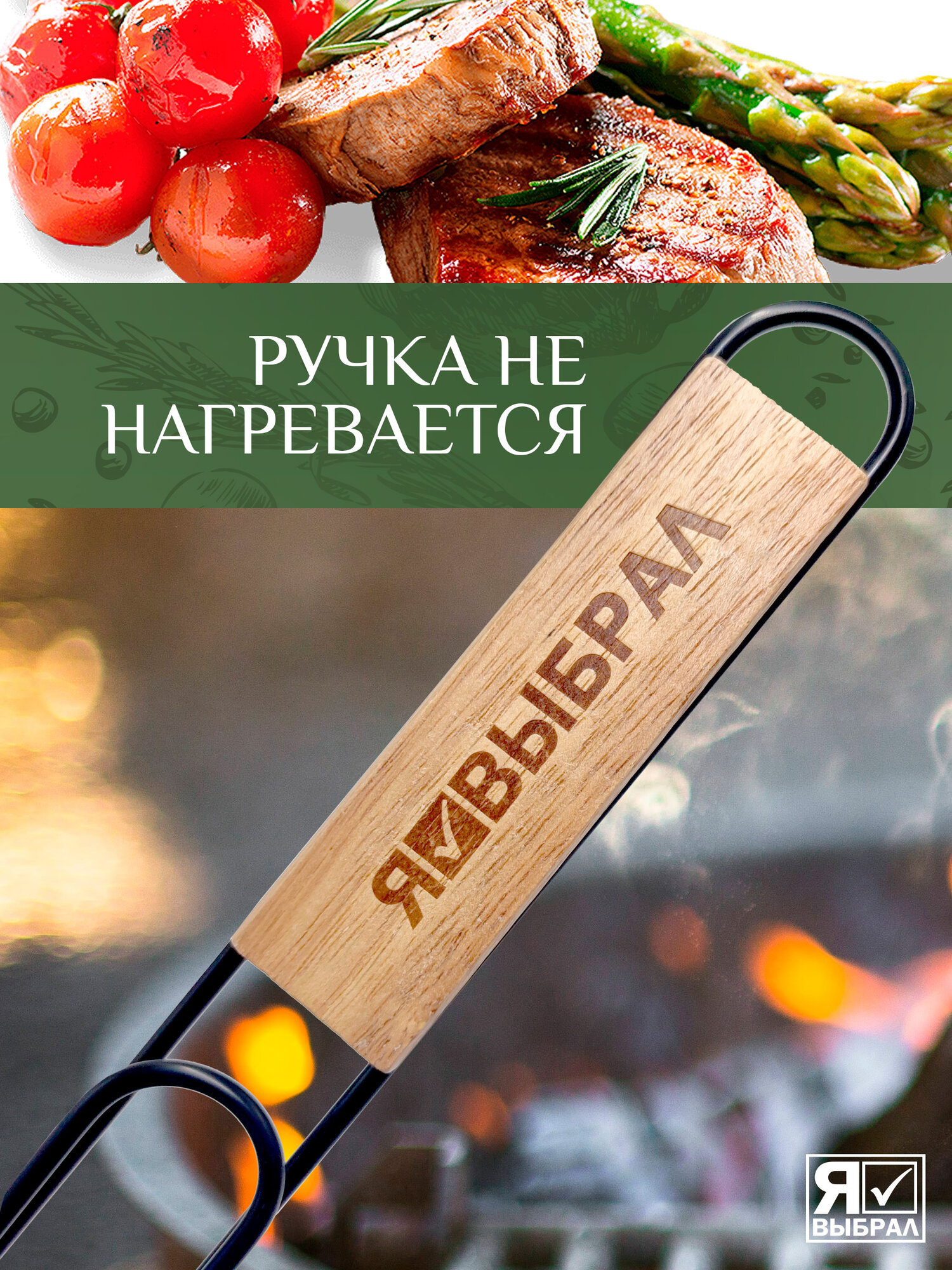 Решетка гриль LESNIKOVA, для птицы, металл, деревянная рукоять, 35x26 см