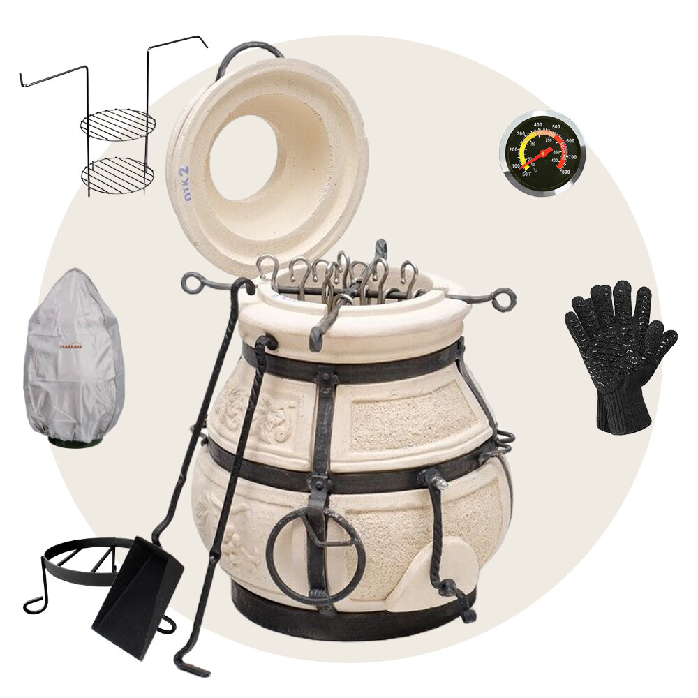 Аполлон с откидной крышкой - Комплект "Dacha" - тандыр для дачи средний - 50 л, Технокерамика.