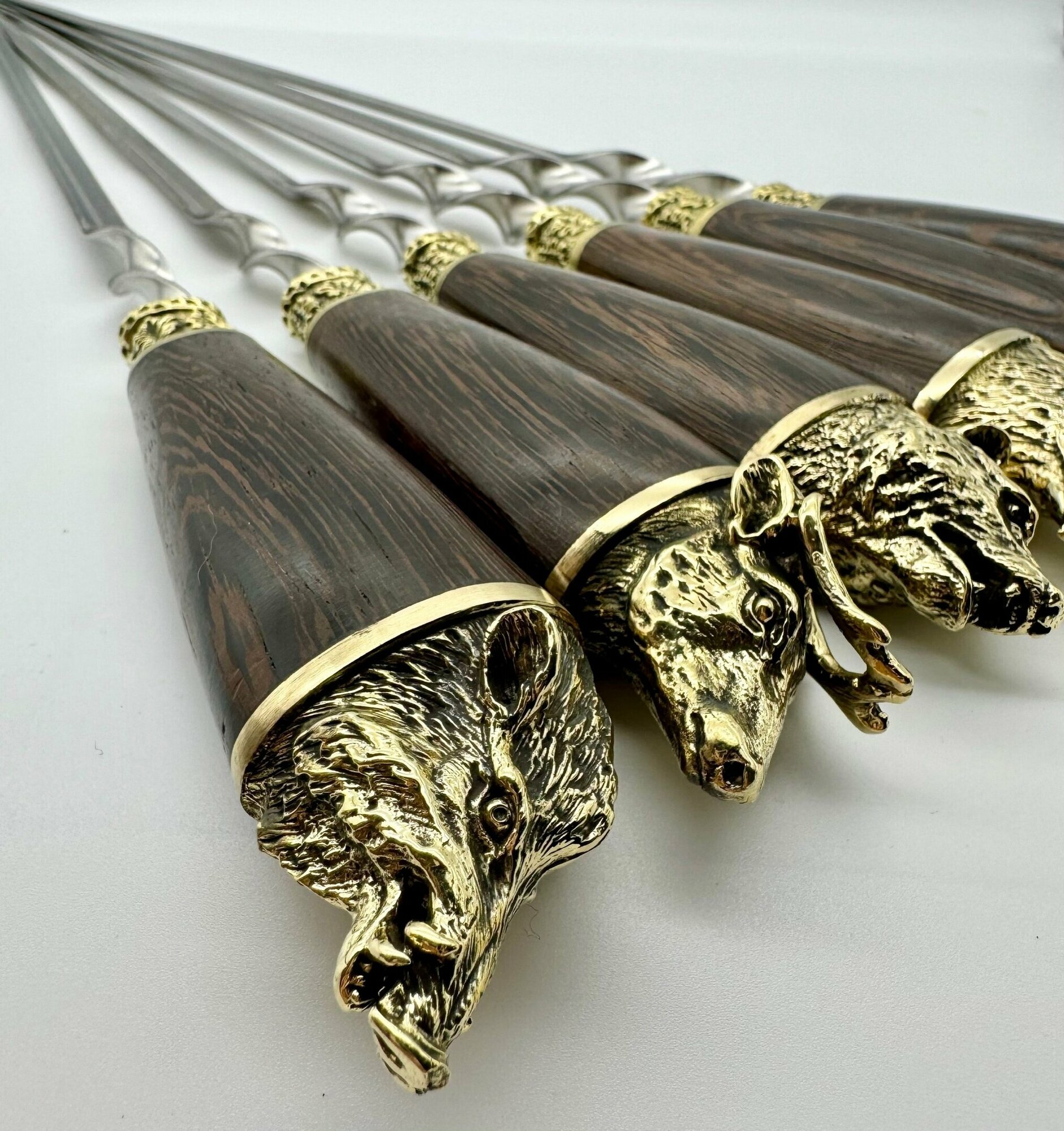 | Комплектация | В данном комплекте 6 шампуров с разными зверями (орёл, медведь, лось, волк, баран, кабан) |