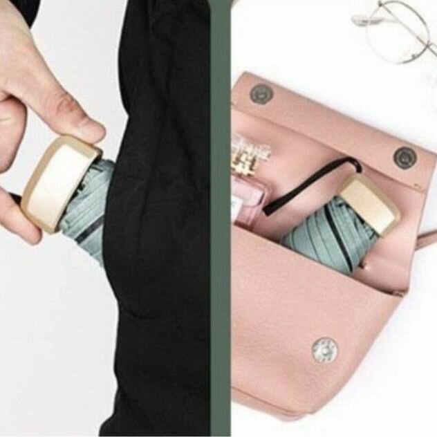 Отзывы на Карманный плоский складной компактный мини зонт 18 см от дождя и солнца. темно-зеленый.