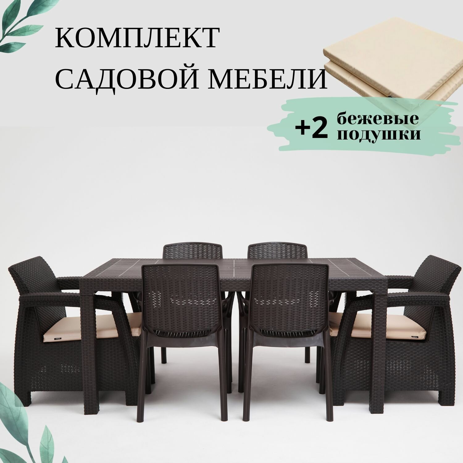 Комплект садовой мебели из ротанга Set 5+2+1+Bt, коричневые подушки