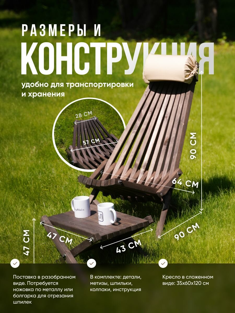 | Комплектация | 2 кресла, столик и 2 подушки под голову |