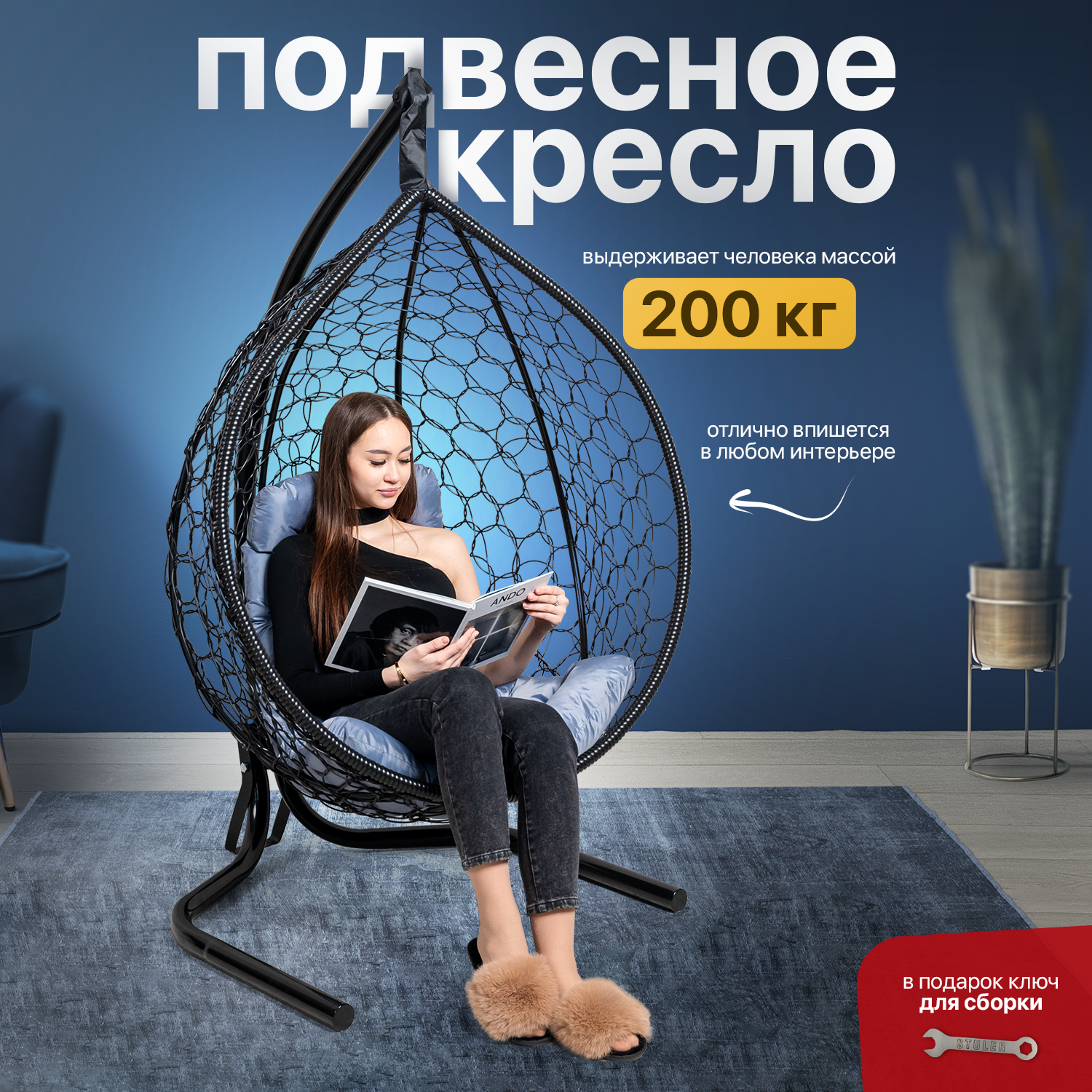 10 цен на Подвесное кресло кокон STULER Plaint Ажур Черный 160х63х100 мягкое садовое кресло с серой подушкой