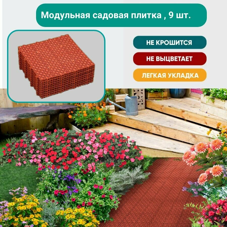 10 цен на Садовая дорожка модульная,плитка для садовых дорожек, 30х30х1см., терракот, 9 шт. комплект