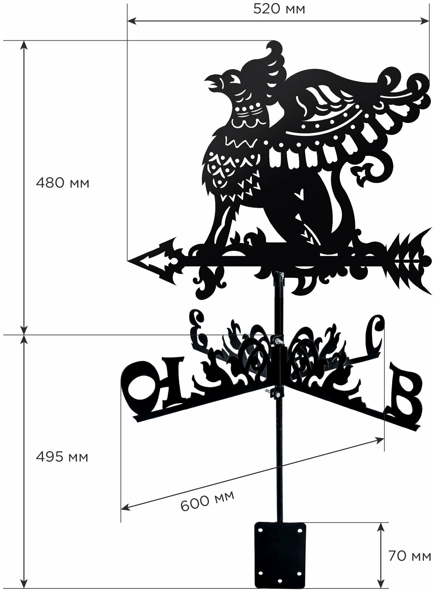 Флюгер кровельный декоративный "Грифон" черный информация: