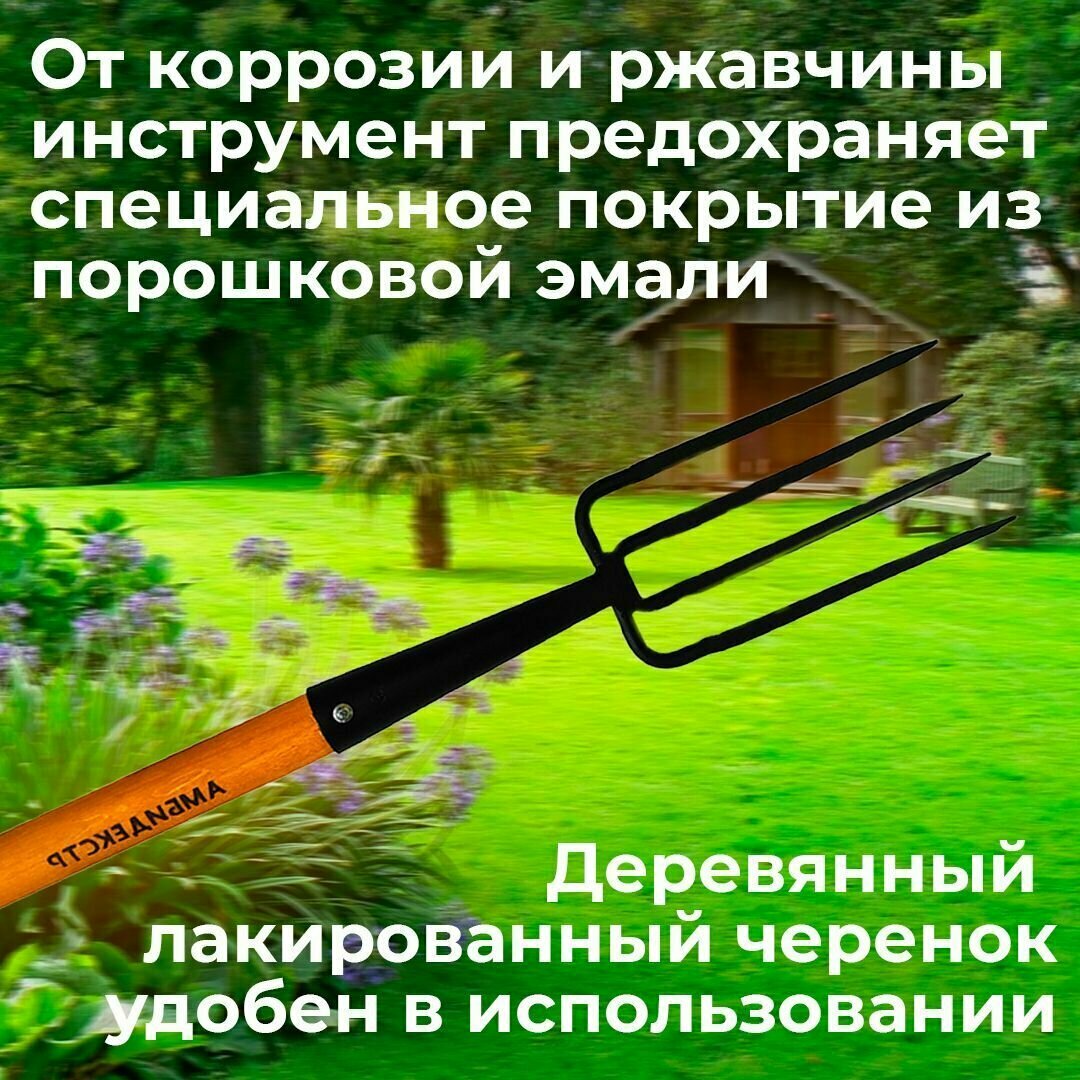 Вилы копательные садовые 4 зуба Амбидекстр, длина рогов 22см, с черенком для рыхления и вскапывания почвы информация:
