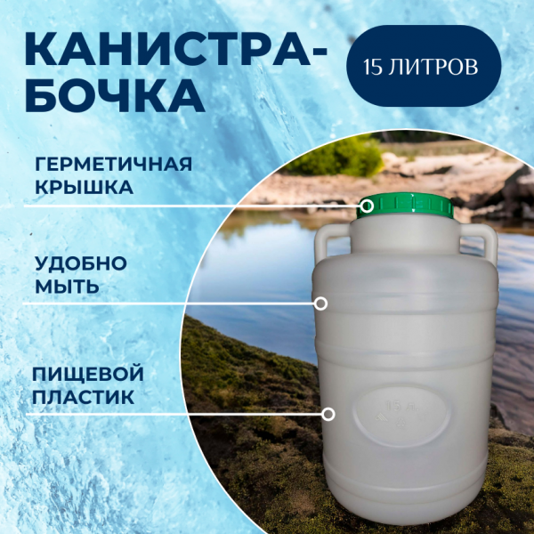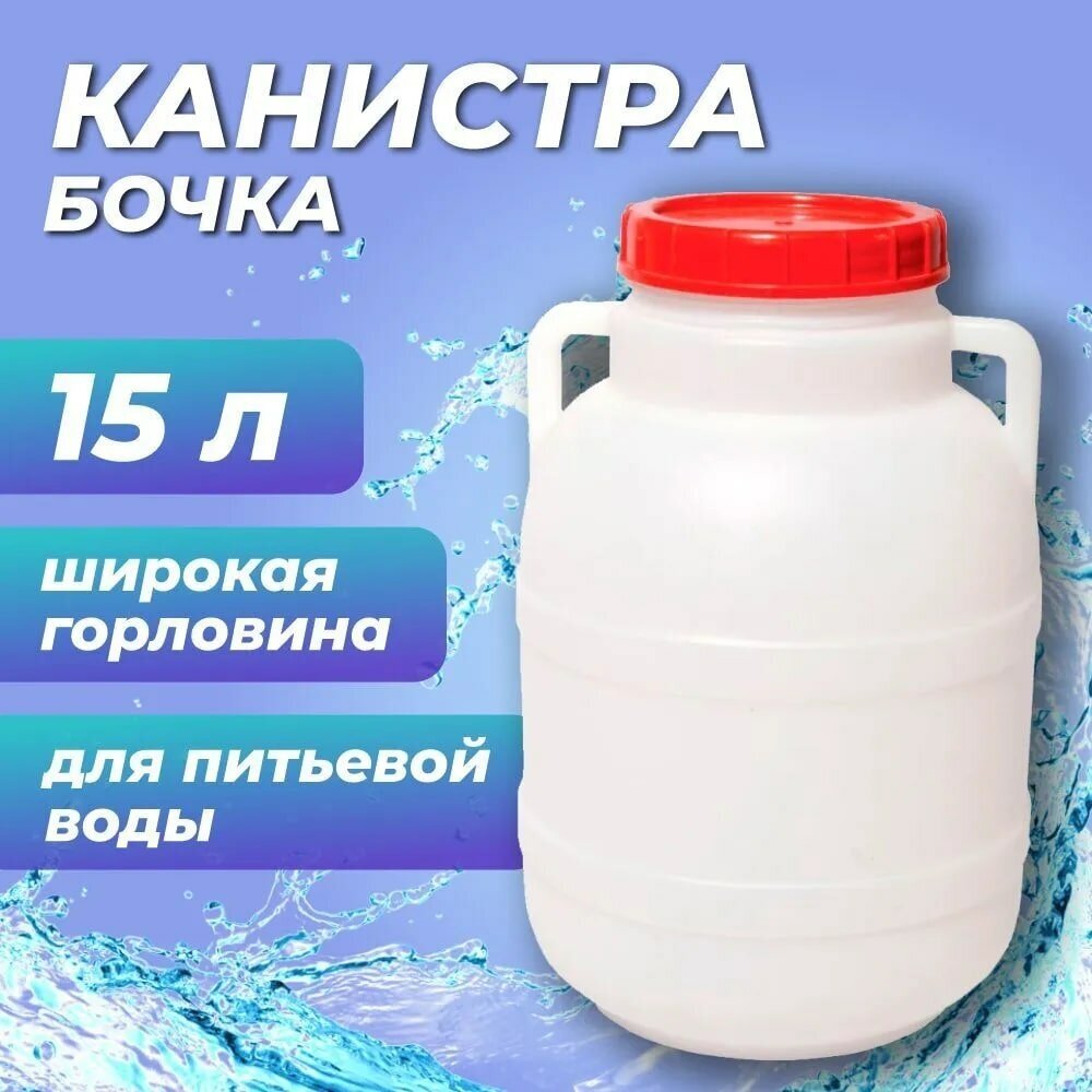 Канистра-бочка пластиковая альтернатива М044 15 л, белый информация: