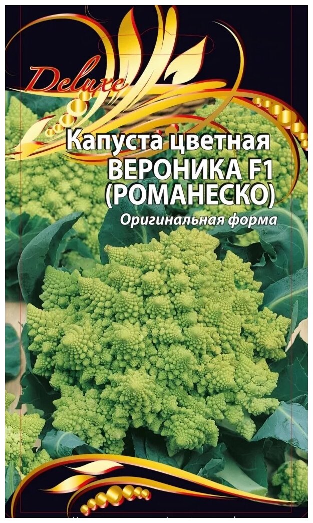 10 цен на Семена Ваше хозяйство Капуста Цветная Вероника F1 (Романеско) Привлекательный среднеспелый гибрид (тип Романеско) для выращивания в открытом грунте и пленочных теплицах. Головка треугольной формы со среднебугристой поверхностью, непокрытая, желто-зеленая,