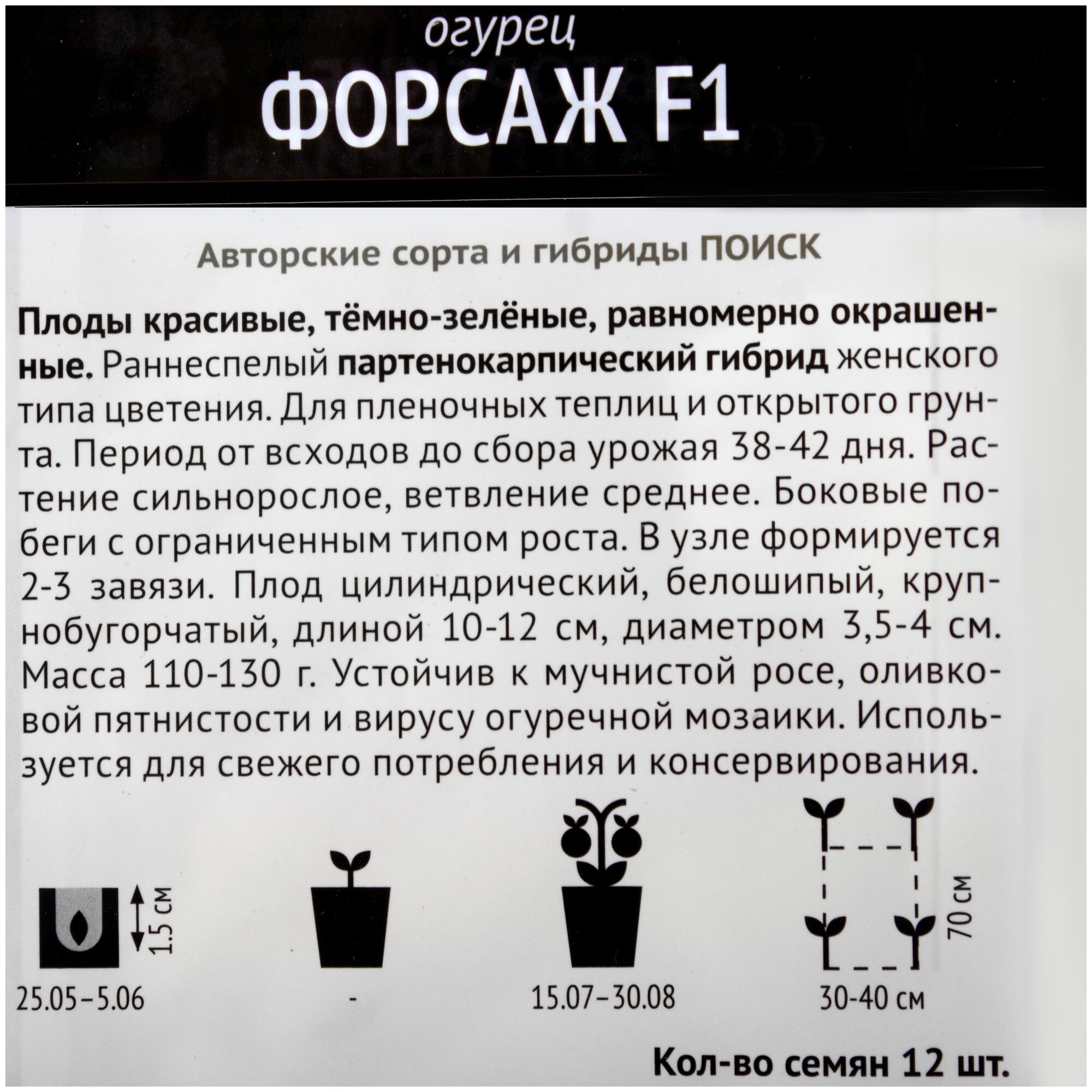 Семена овощей Поиск "Огурец Форсаж", F1, 12 шт. 5 пакетов информация: