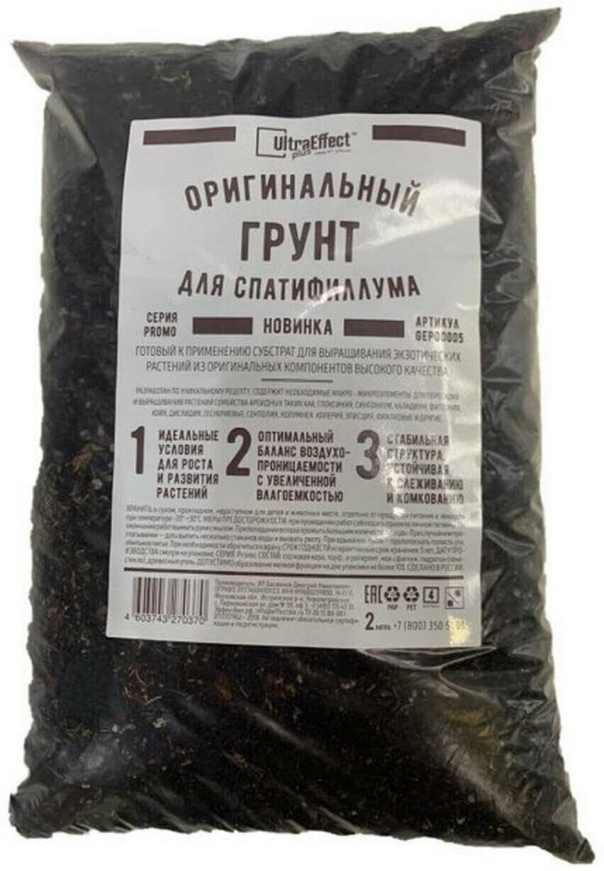 | Состав | Грунт UltraEffect Plus оригинальный для спатифиллума, 2 л, 2 кг |