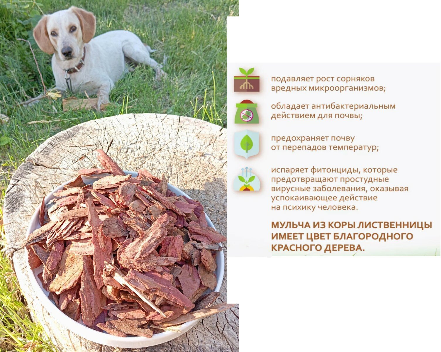 Мульча. Кора лиственницы, 2-6. Мульча для сада 60 литров информация: