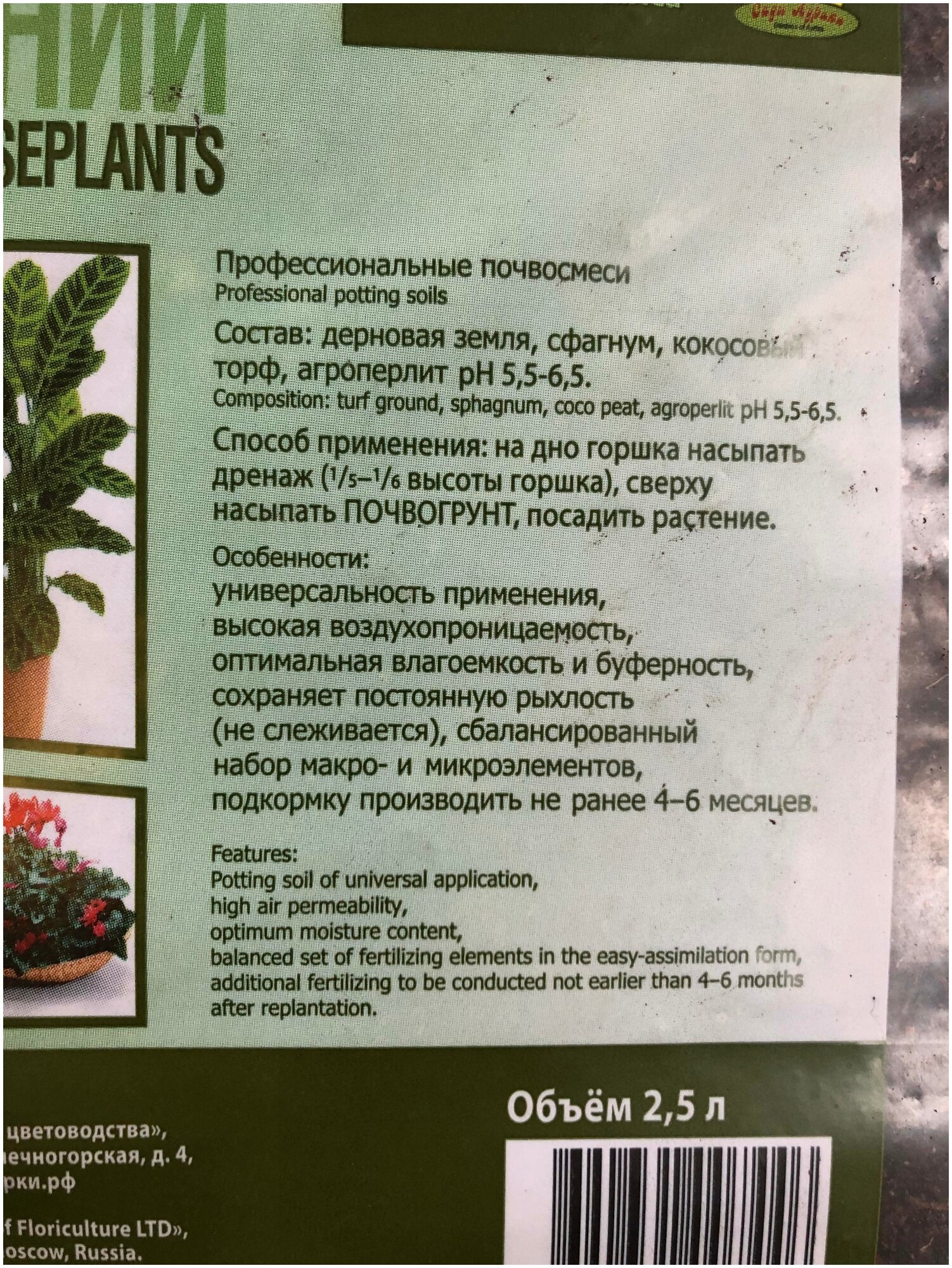 Грунт для комнатных растений 2.5 л информация: