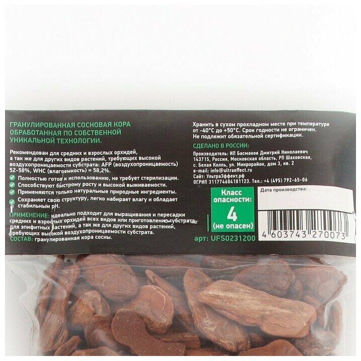 | Состав | Гранулят из сосновой коры UltraEffect ProLine Super, 19-28 мм, 1.2 л, 0.27 кг |