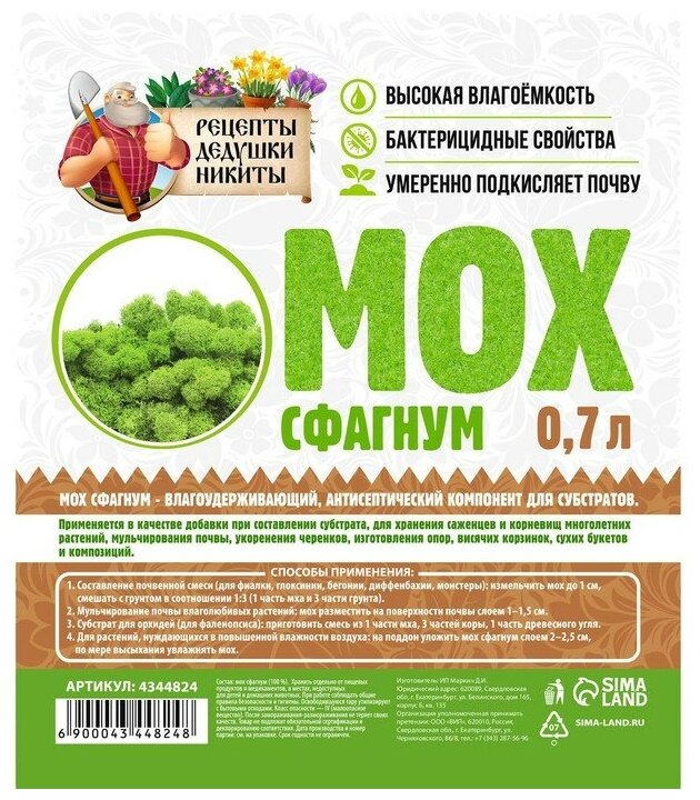 Мох "Рецепты Дедушки Никиты" 0,7 л информация: