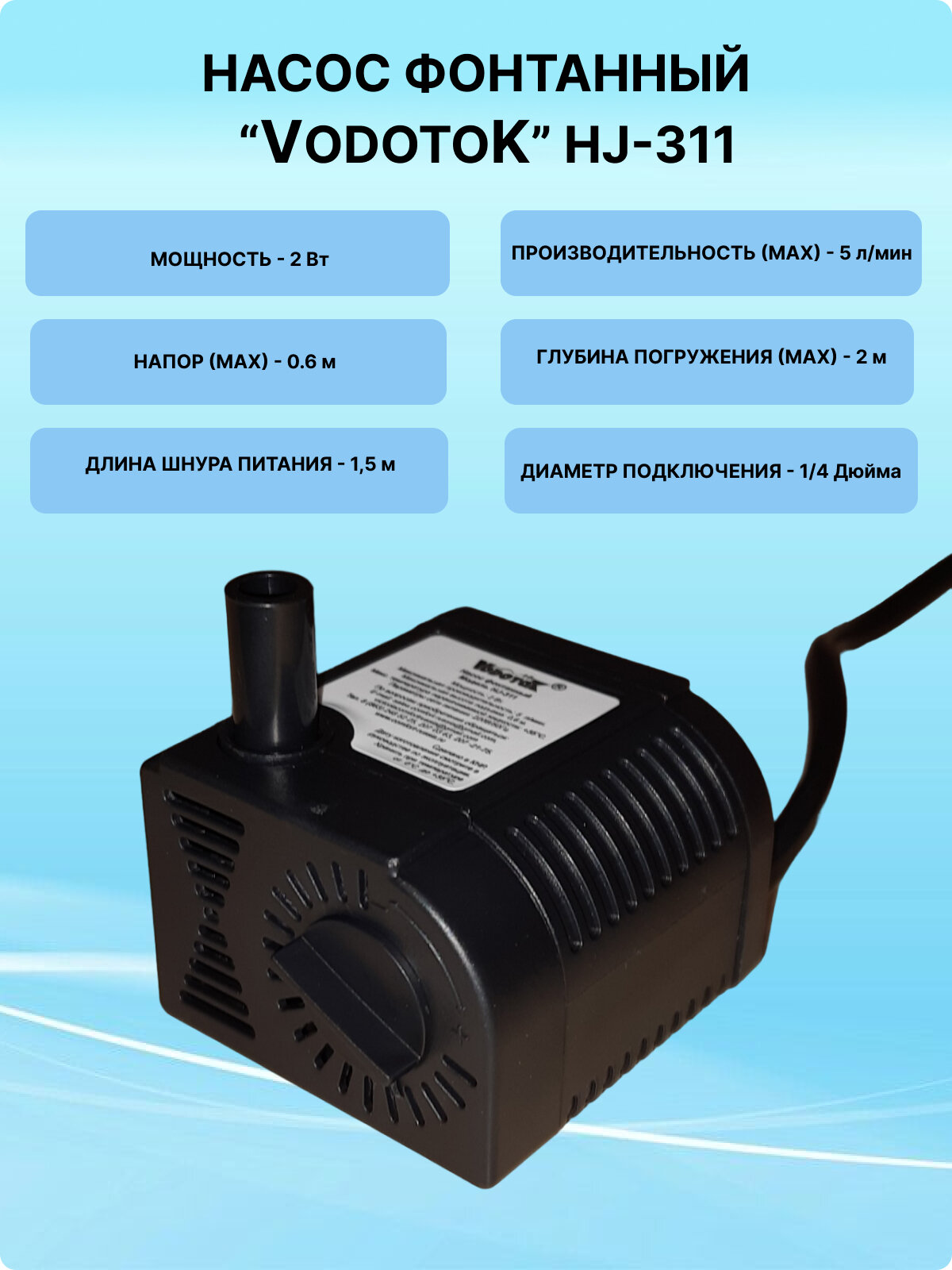 Насос фонтанный "VodotoK" HJ-311 информация: