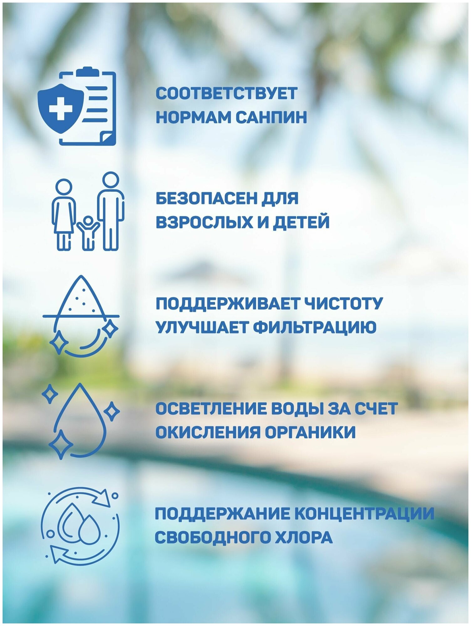 | Назначение | консервирование бассейна / обеззараживание / осветление мутной воды / очистка / против цветения воды / универсальное средство / чистка чаши бассейна |
