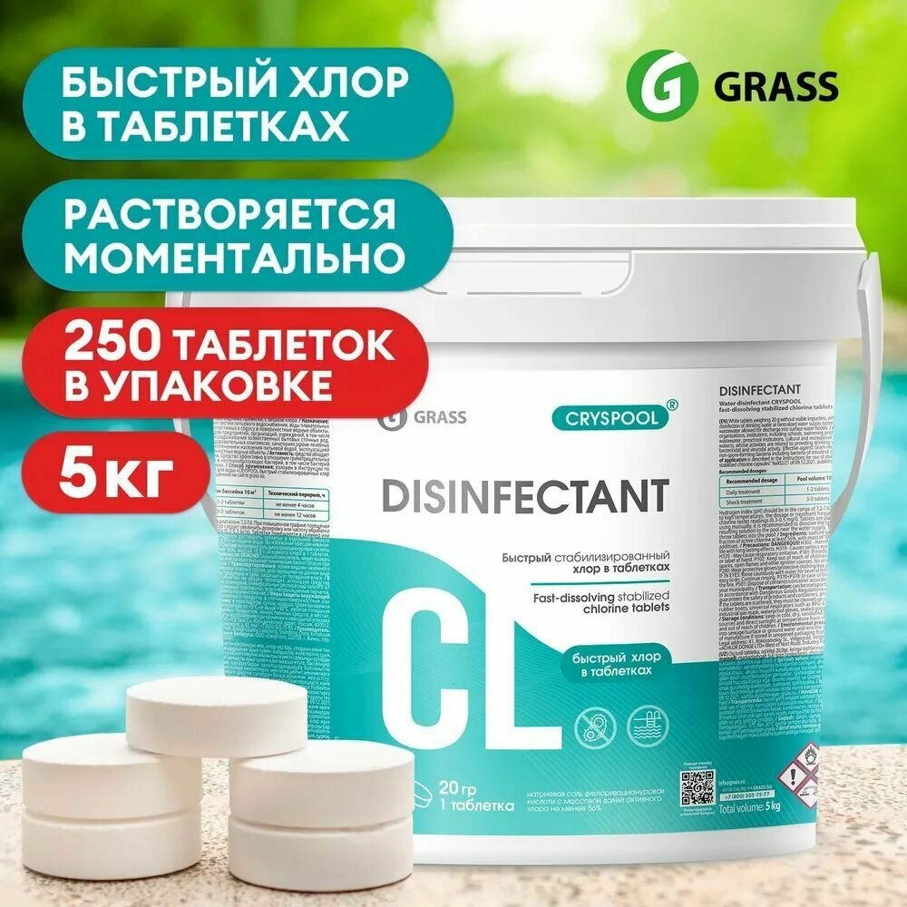 Дезинфицирующее средство для воды Grass CRYSPOOL быстрый стабилизированный хлор в таблетках ,1кг.