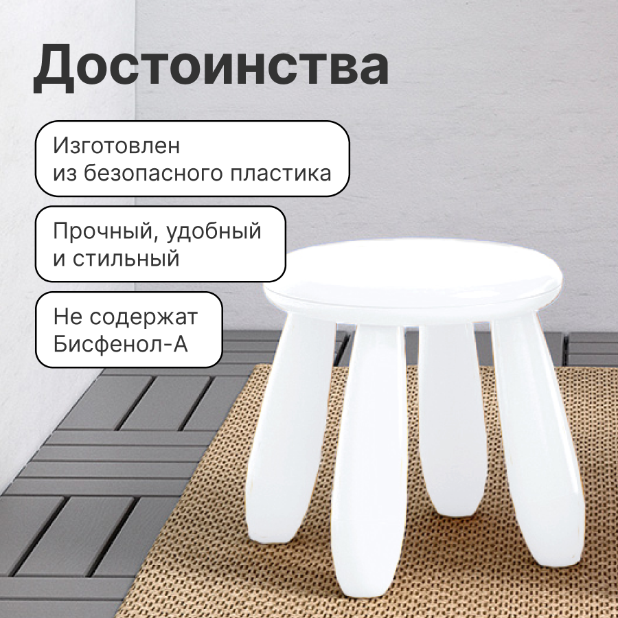 Табурет детский Мамонт, стульчик подставка для ребенка, белый информация:
