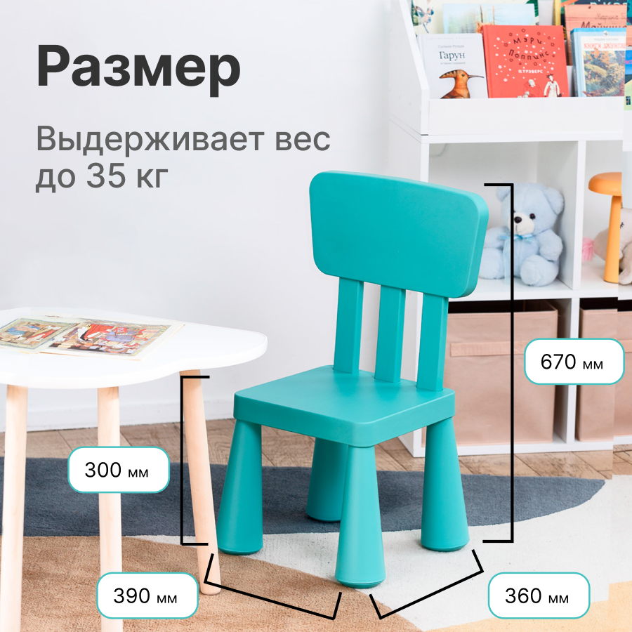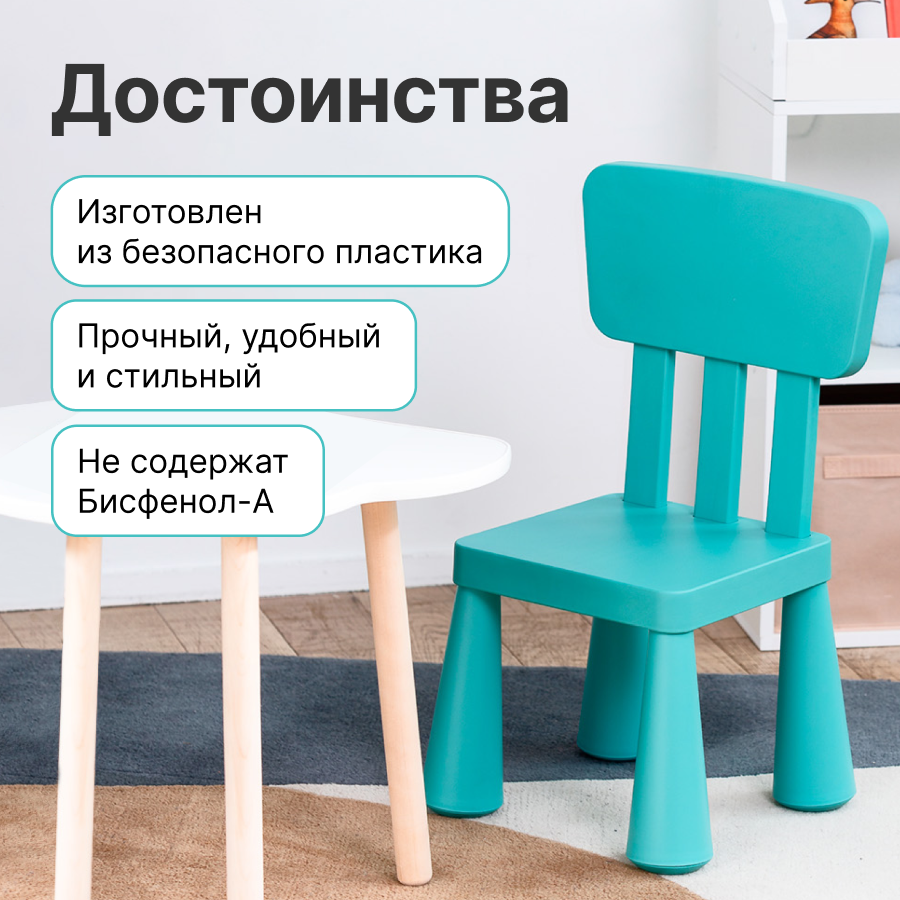 10 цен на Стул детский Мамонт, пластиковый стульчик со спинкой, бирюзовый