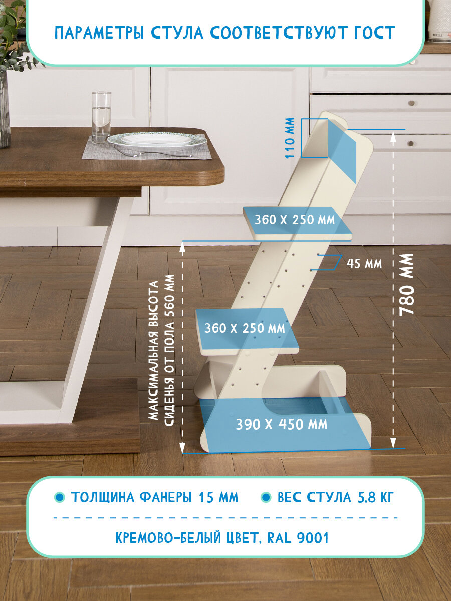 Универсальный растущий стул детский, кремово-белый информация: