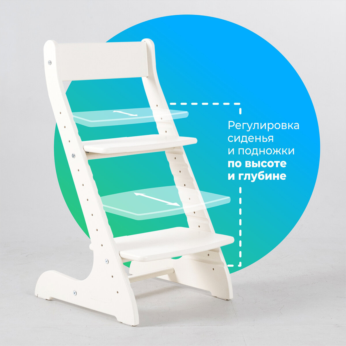 Отзывы на Растущий стул для детей, детский деревянный стульчик для школьника Конек Горбунек Стандарт, цвет Белый