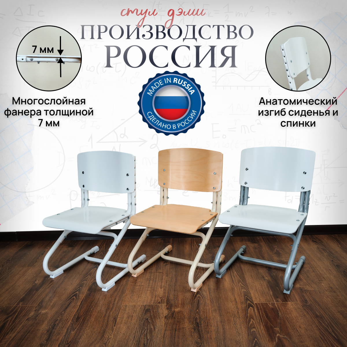 Стул ученический регулируемый "ДЭМИ" СУТ.01, 400х330-343х795-874 мм, серый каркас, фанера лак