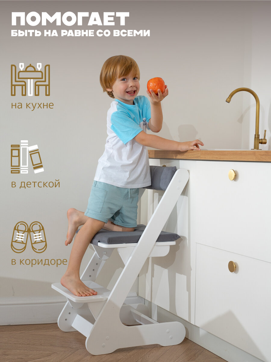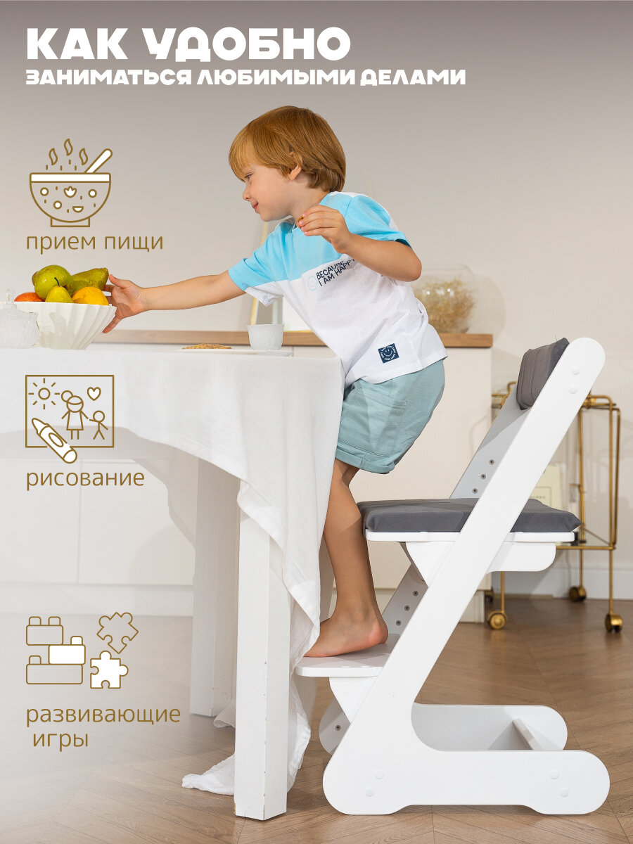 10 цен на Растущий стул детский растульчик деревянный белый с серой подушкой